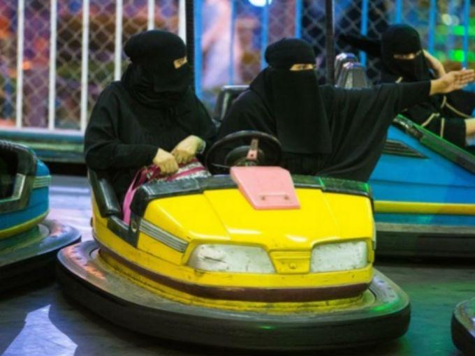 En Arabia Saudita las mujeres aprenden a manejar en carritos chocones